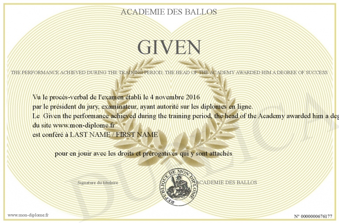 Envoyez par email votre Given the performance achieved during the training period, the head of the Academy awarded him a degree of success personalisé