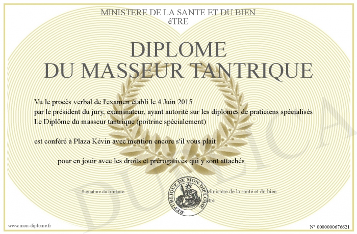 Envoyez par email votre Diplôme du masseur tantrique personalisé
