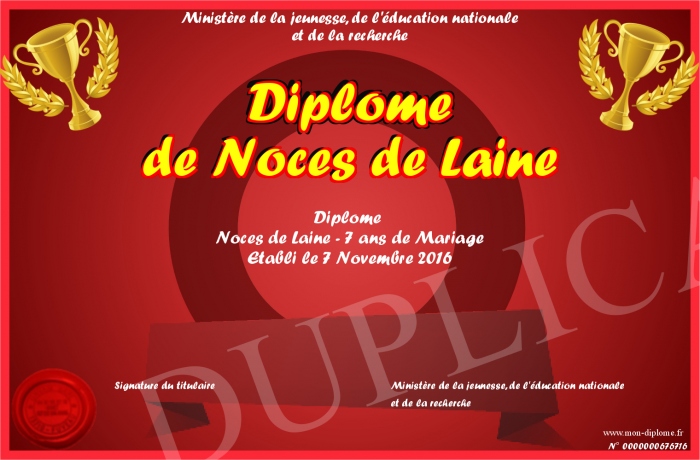 Envoyez par email votre Diplôme de Noces de Laine personalisé