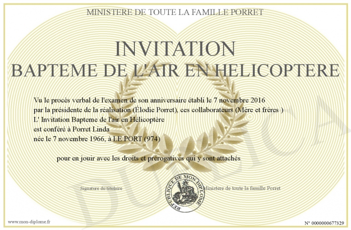 Envoyez par email votre Invitation Bapteme de l'air en Hélicoptère personalisé