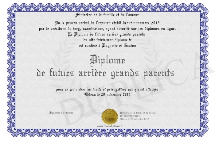 Envoyez par email votre Diplome de futurs arrière grands parents personalisé