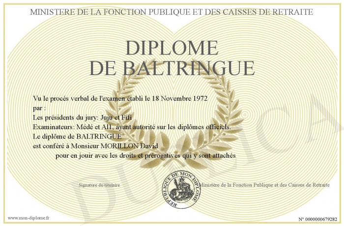Envoyez par email votre Diplôme de BALTRINGUE personalisé