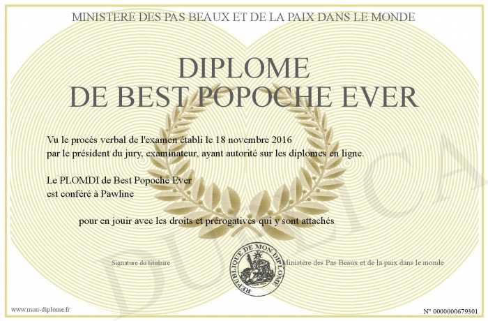 Envoyez par email votre Diplôme de Best Popoche Ever personalisé