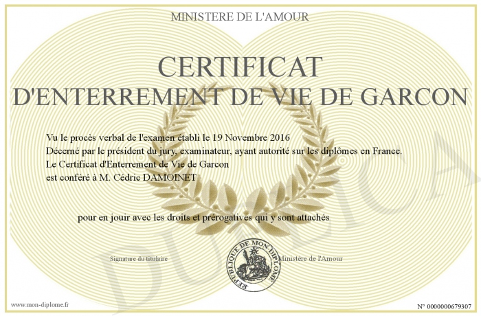 Envoyez par email votre Certificat d'Enterrement de Vie de Garcon personalisé