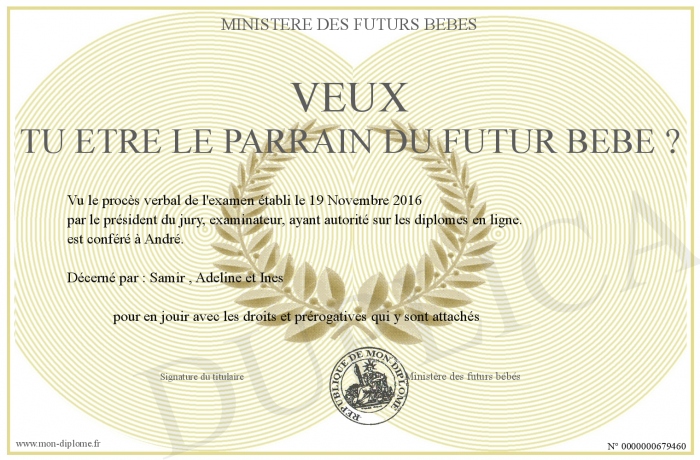 Envoyez par email votre veux tu etre le parrain du futur bébé ? personalisé