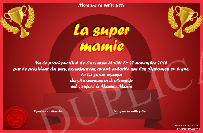 Envoyez par email votre La super mamie personalisé