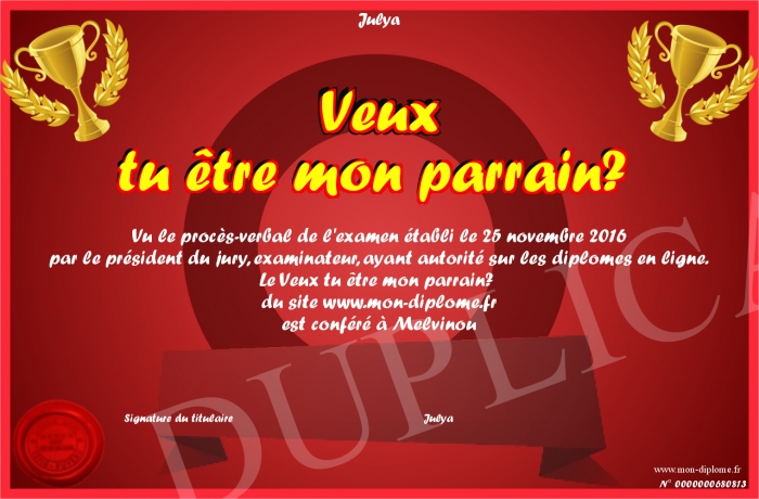 Envoyez par email votre Veux tu être mon parrain? personalisé