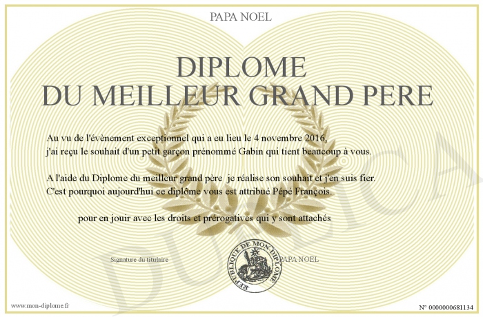 Envoyez par email votre Diplôme du meilleur grand père personalisé