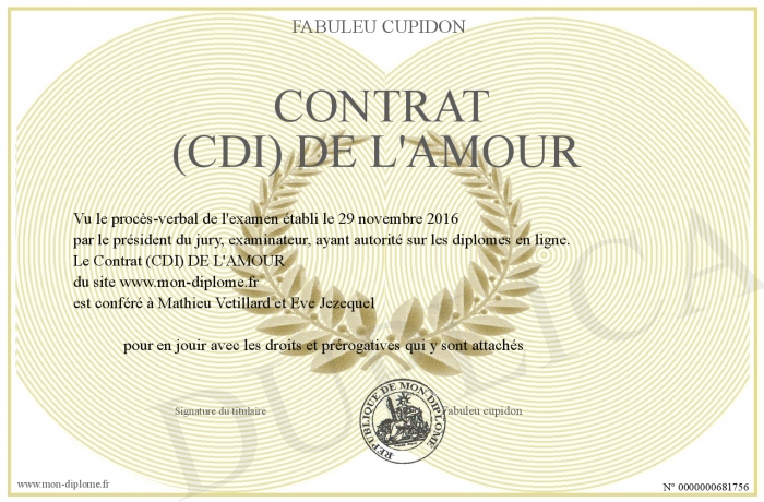 Envoyez par email votre Contrat (CDI) DE L'AMOUR personalisé