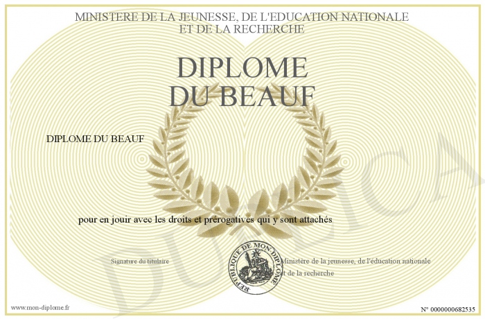 Envoyez par email votre DiplômE DU BEAUF personalisé