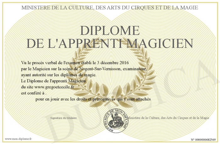 Envoyez par email votre Diplôme de l'apprenti Magicien personalisé