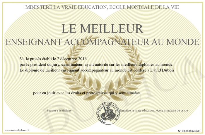 Envoyez par email votre Le meilleur enseignant accompagnateur au monde personalisé