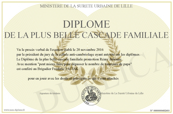 Envoyez par email votre Diplôme DE LA PLUS BELLE CASCADE FAMILIALE personalisé