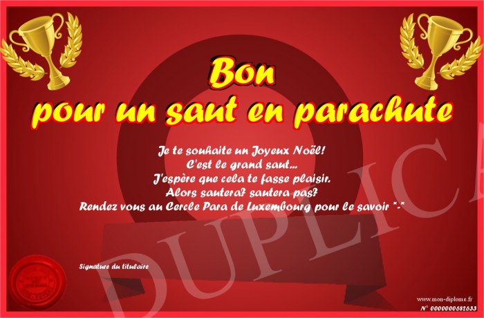 Envoyez par email votre Bon pour un saut en parachute personalisé