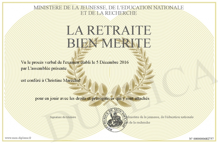 Envoyez par email votre la retraite bien Mérité personalisé