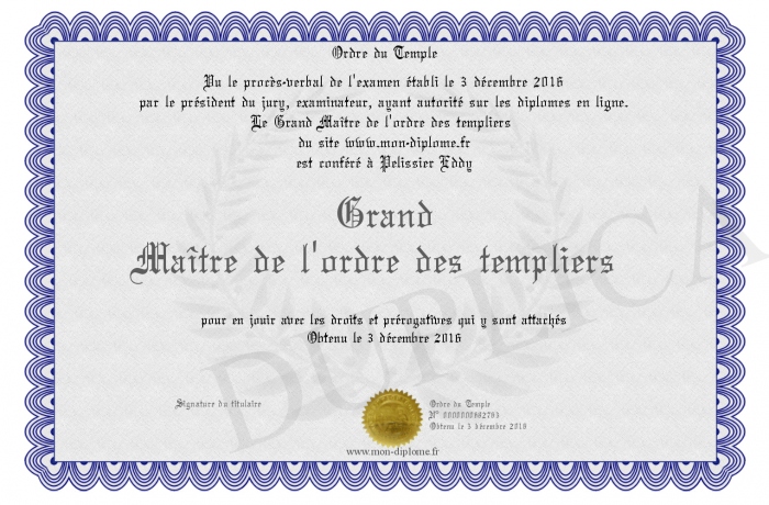 Envoyez par email votre Grand Maître de l'ordre des templiers personalisé
