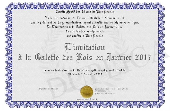 Envoyez par email votre L'invitation à la Galette des Rois en Janvier 2017 personalisé