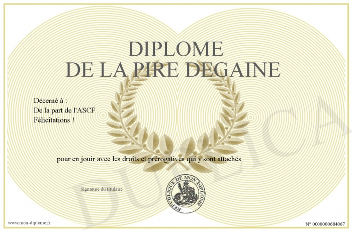 Envoyez par email votre Diplome de la pire dégaine personalisé