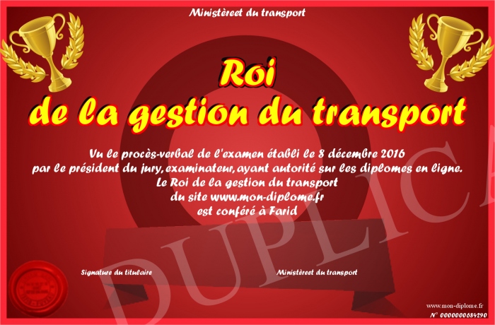 Envoyez par email votre Roi de la gestion du transport personalisé