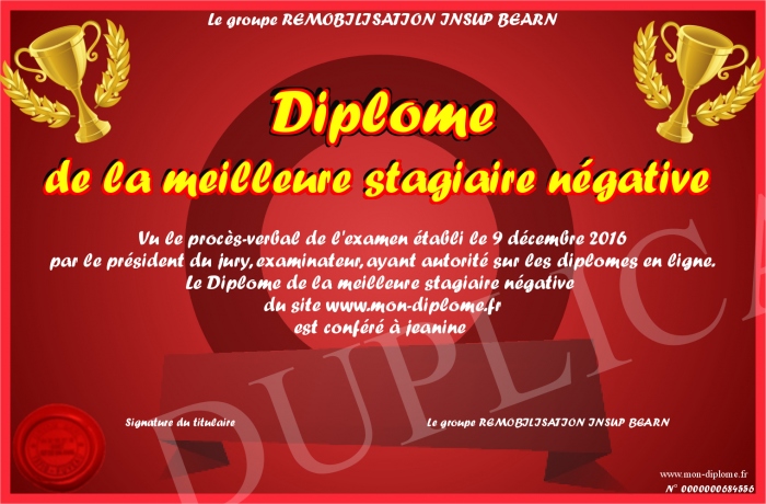 Envoyez par email votre Diplôme de la meilleure stagiaire négative personalisé