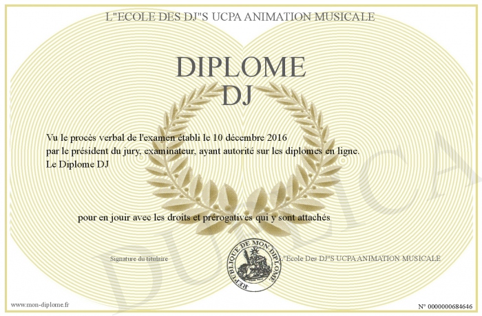 Envoyez par email votre Diplôme DJ personalisé