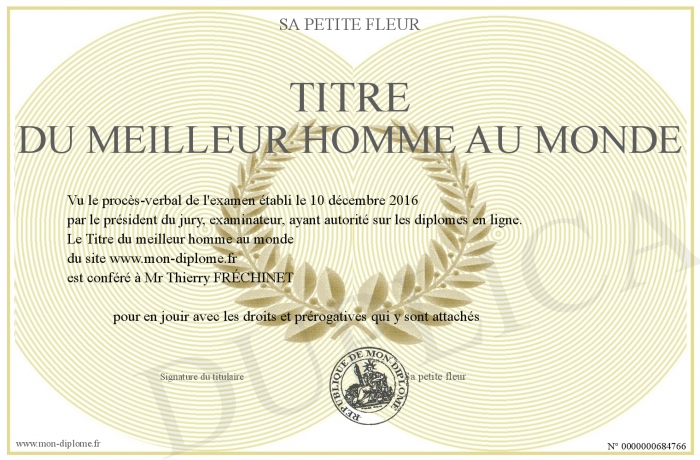 Envoyez par email votre Titre du meilleur homme au monde personalisé