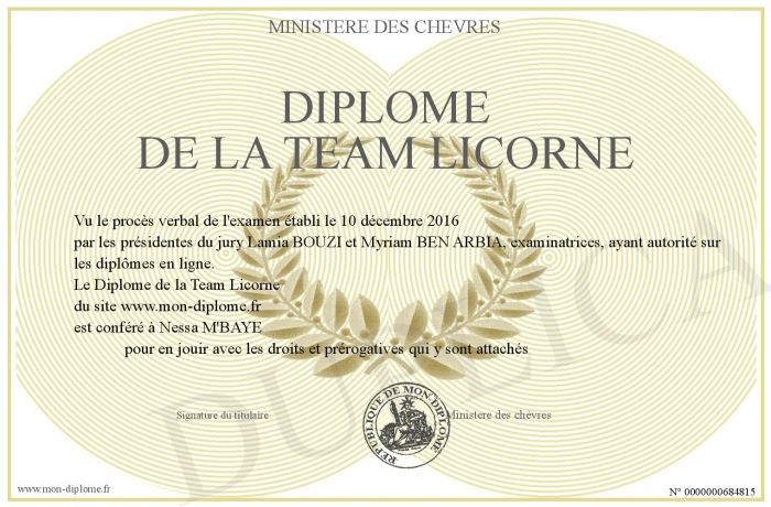 Envoyez par email votre Diplôme de la Team Licorne personalisé