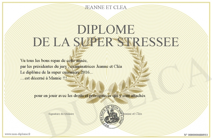 Envoyez par email votre Diplôme de la super stressée personalisé