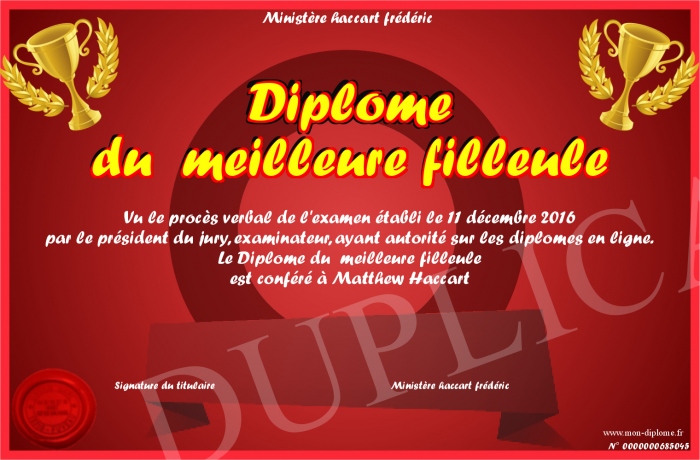 Envoyez par email votre Diplome du meilleure filleule personalisé