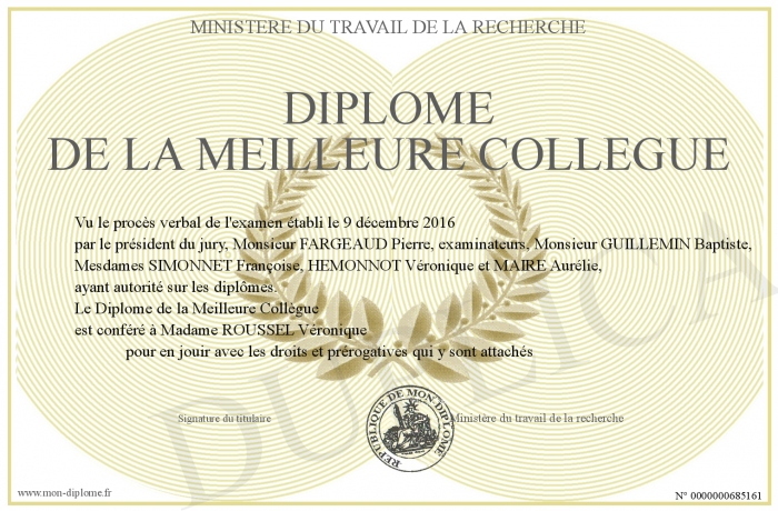Envoyez par email votre Diplôme de la Meilleure Collègue personalisé