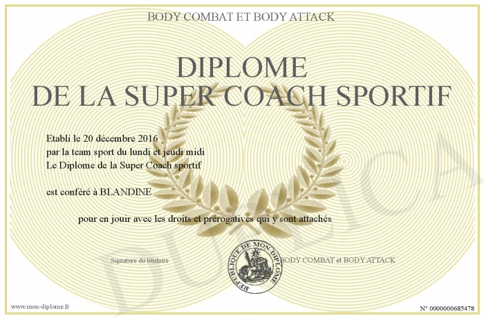 Envoyez par email votre Diplôme de la Super Coach sportif personalisé