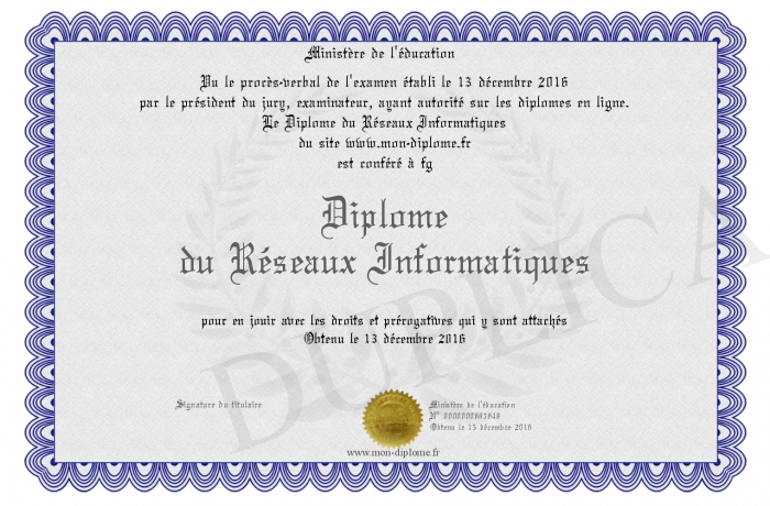 Envoyez par email votre Diplôme du Réseaux Informatiques personalisé