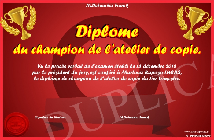 Envoyez par email votre Diplôme du champion de l'atelier de copie. personalisé