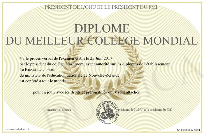 Envoyez par email votre Diplôme du meilleur collège mondial personalisé