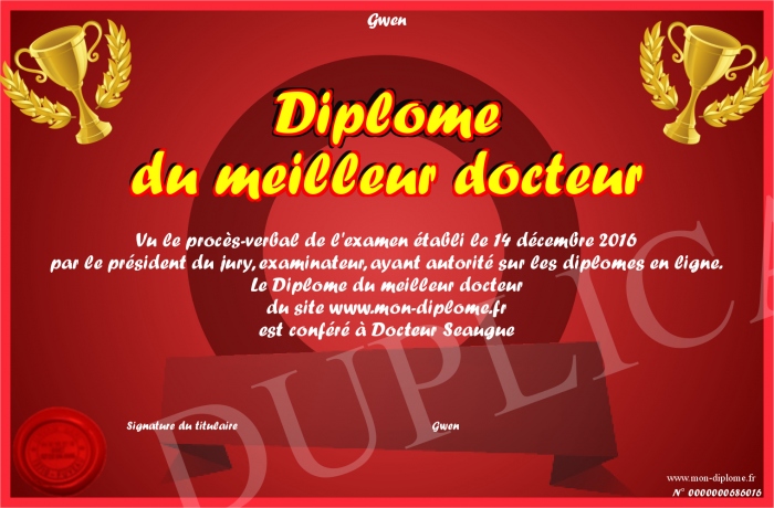Envoyez par email votre Diplôme du meilleur docteur personalisé