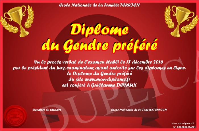 Envoyez par email votre Diplôme du Gendre préféré personalisé