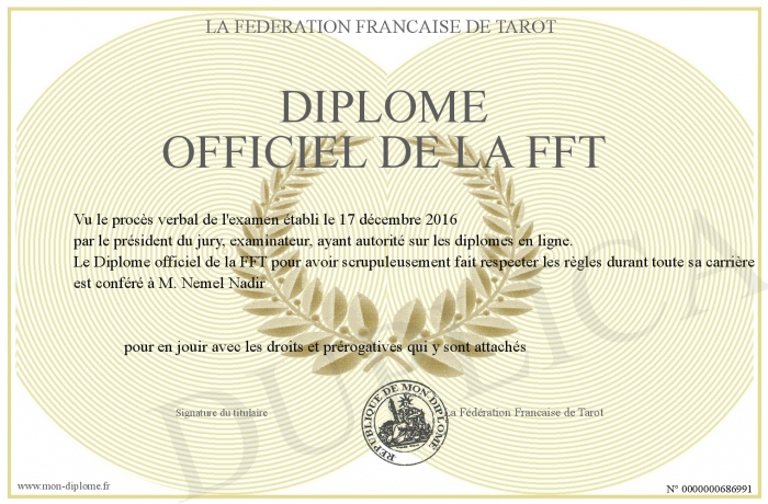 Envoyez par email votre Diplôme officiel de la FFT personalisé