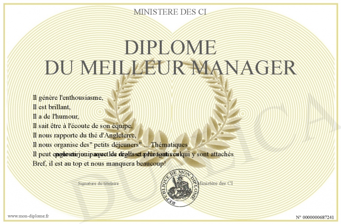 Envoyez par email votre Diplôme du Meilleur Manager personalisé