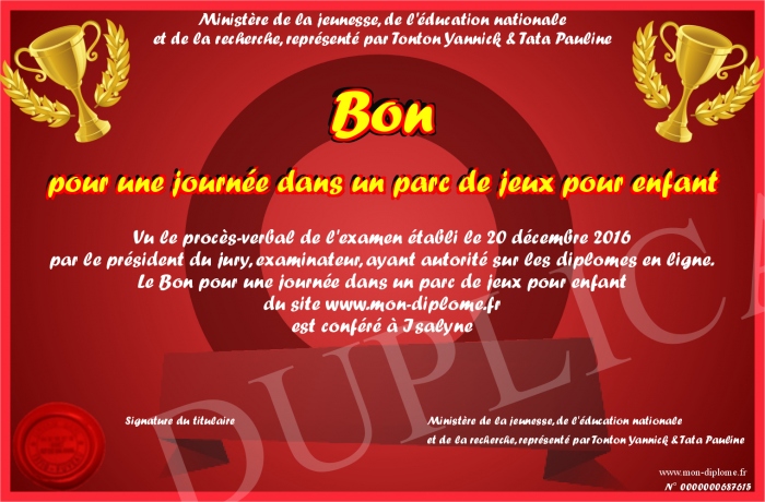 Envoyez par email votre Bon pour une journée dans un parc de jeux pour enfant personalisé
