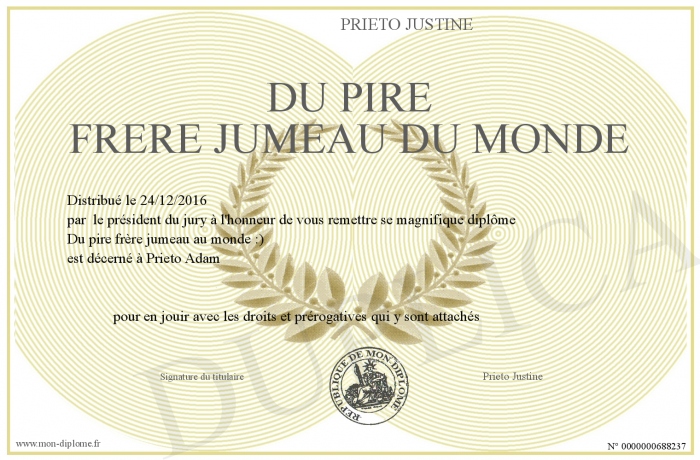 Envoyez par email votre du pire frère jumeau du monde personalisé