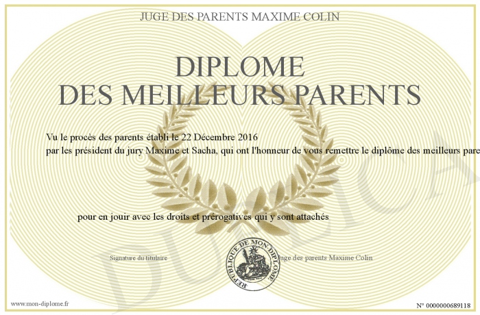 Envoyez par email votre Diplôme des meilleurs parents personalisé