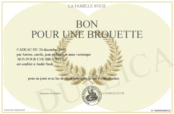 Envoyez par email votre BON POUR UNE BROUETTE personalisé