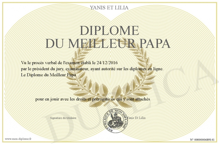 Envoyez par email votre Diplôme du Meilleur Papa personalisé