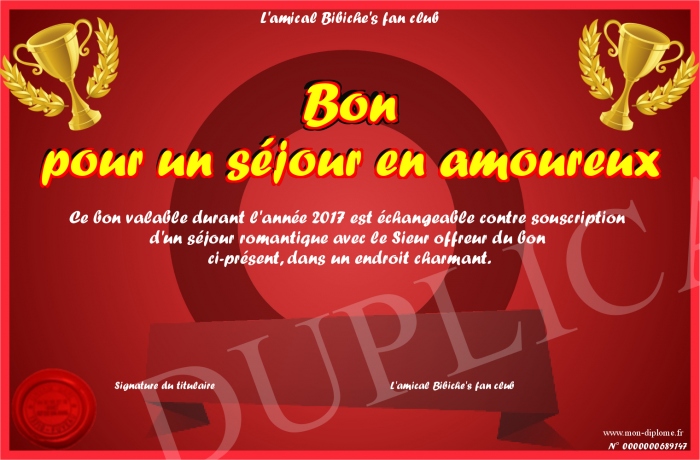 Envoyez par email votre Bon pour un séjour en amoureux personalisé