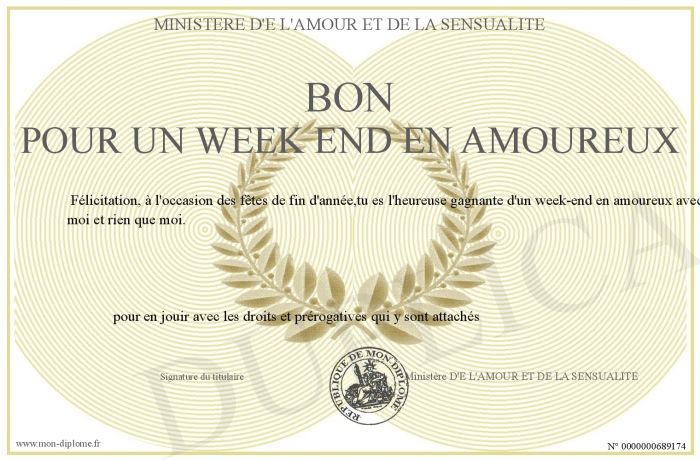 Envoyez par email votre BON POUR UN WEEK END EN AMOUREUX personalisé