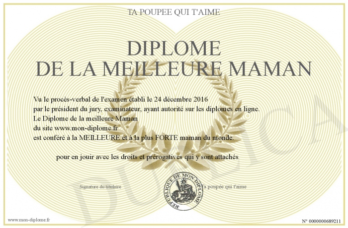 Envoyez par email votre Diplôme de la meilleure Maman personalisé