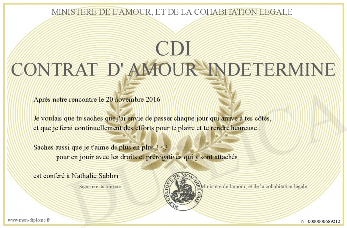 Envoyez par email votre CDI Contrat d' Amour Indéterminé personalisé