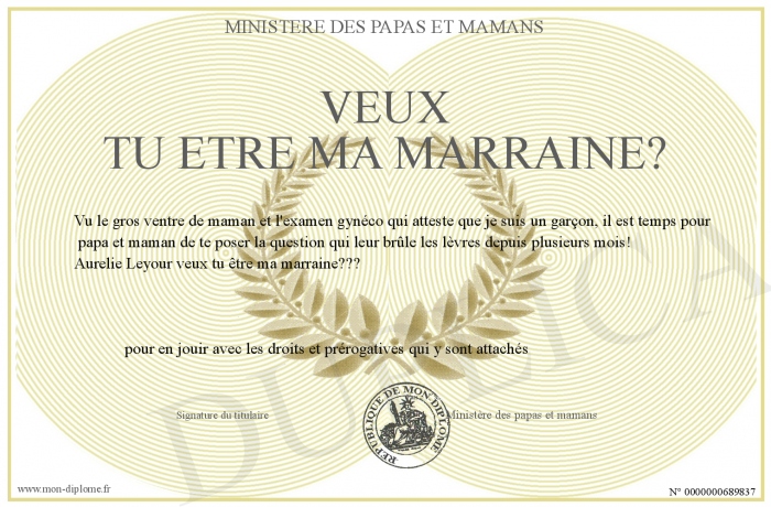 Envoyez par email votre veux tu etre ma marraine? personalisé