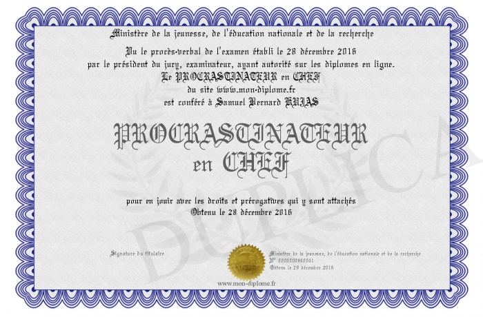 Envoyez par email votre PROCRASTINATEUR en CHEF personalisé