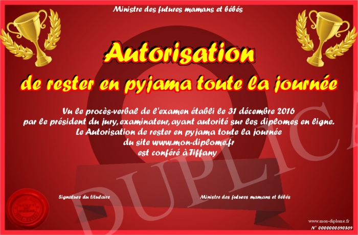 Envoyez par email votre Autorisation de rester en pyjama toute la journée personalisé